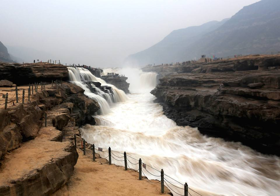 Jinci national cultural heritage, located 25 kilometers southwest suburb of Taiyuan, the hanging urn foothills. Jinci Western Zhou Dynasty to commemorate the original (11th century BC) the second son of King Wu of Jin Hou founding built. Age has not created test. Wei Li Tao Yuan's "Waterways" will have on the record Jinci shows that were already quite well known. 黄河壶口瀑布 位于吉县城西45公里、距临汾市165公里处的晋陕峡谷黄河河床中,为世界上最大的黄色瀑布,因其气势雄浑而享誉中外。此地两岸夹山,河底石岩上冲刷成一巨沟,宽达30米,深约50米,滚滚黄水奔流至此,倒悬倾注,若奔马直入河沟,波浪翻滚,惊涛怒吼,震声数里可闻。其形如巨壶沸腾,故名。黄河浪涛激起一团团雾烟云随着水雾的升高,烟云由黄变灰、由灰变蓝,景色奇丽,有“水底生烟”之说。壶口瀑布不仅有“水底冒烟”,“彩桥通天”奇景,更有“旱地行船”之说。上游船只到此,必须离水登陆,经人抬或车运绕过壶口(即所谓“旱地行船”)方可入水续航,千百年来,概莫能变。